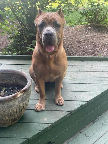 Tank is a blue male who’s temperament is amazingly docile. He is extremely large for his age but is a gentle giant!
